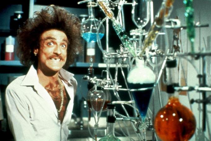 Mark Blankfield is Daniel Jekyll, a somewhat brilliant surgeon who has decided to abandon his practice and conduct research dedicated to non-invasive procedures, namely administering drugs in place of surgery. While working in the lab late one night (“he did the mash!”), he accidentally mixes powders and snorts it up while he sleeps. After a violent fit of coughing, he transforms into a mustachioed sex maniac, decked out in a leisure suit and gold chains, with an electrified jew-fro. A cocaine-scooping nail emerges from his pinky, and his penis grows to impressive lengths. This is really silly. What follows is filler. Mr. Hyde takes to the town.