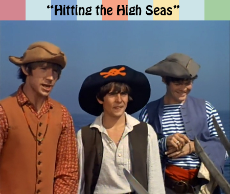 “Hitting the High Seas” was directed by James Frawley and written by Jack Winter, who wrote four other episodes that I listed in my recap for “The Picture Frame.” Fun note about the title: the book, Monkee Magic by Melanie Mitchell, notes that it’s a pun on hitting the high “C’s,” as in the musical note. This episode is included in The Monkees DVD/VHS “Our Favorite Episodes” as Davy Jones’ favorite. Though the Amazon description of that box set notes this may not be entirely the case as he states “Royal Flush” is his favorite on the DVD box set commentary. Jones gives commentary for this episode as well.