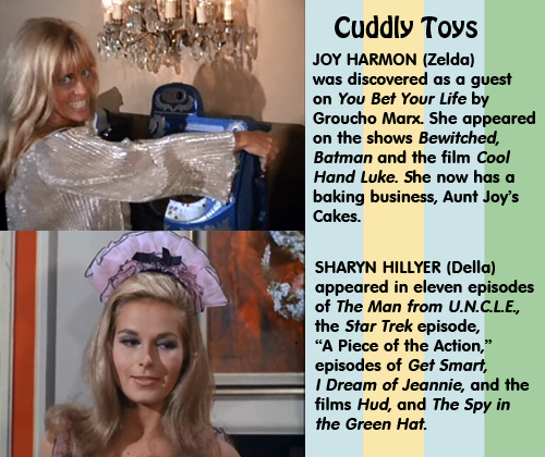 Back in their room, the gangsters talk about how to get the money back. The Boss tells Biggy to get Della the Decoy. Meanwhile, the Monkees carry Micky’s winnings back to their room on a stretcher. They consider what to spend it on; Mike says they should invest the money in something “worthwhile.” [Nesmith was quite the businessman. – Editor’s Note] There’s a quick montage of Micky, Mike, and Davy picturing hot girls while Peter imagines hugging a stuffed tiger. That was hilarious, and Peter was the only one who got close to his object of desire. Also, could be an allusion to the song, “Cuddly Toy” that’s used later in the episode and the notion of girls as “cuddly toys.”
