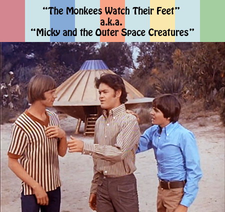 “The Monkees Watch Their Feet” a.k.a. “Micky and the Outer Space Creatures” is a standout episode of the second season, mostly because of the unusual story-telling style. Instead of seeing things from the Monkees point of view, the story is done as a documentary (or mockumentary), introduced to us by comedian Pat Paulsen. Like “Fairy Tale,” this is a deviation from the usual format. I imagine that if you had never seen The Monkees before and somehow this episode or “Fairy Tale” was the first you saw, you’d be puzzled. “Monkees Watch Their Feet” is also one of the most subversive of the series. Much of this episode is a commentary on the Red Scare, the war in Vietnam, and the generation gap, expressed both in Paulsen’s narration and in the homage to science fiction movies.