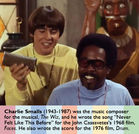 Next is a segment with Davy Jones hanging out with Charlie Smalls (1943-1987). This was supposedly a sample of the “variety show” style the Monkees wanted, where they would chat with musical guests after the comedy. Charlie plays the piano while Davy explains that they’re writing songs together. Davy asks why he (Davy) doesn’t have soul. Charlie says he has to explain rhythmically. “Your soul would emanate on the accented beats one and three. Where my soul emanates on the accented beats two and four.” He uses the Beatles as an example, claiming they play “hard and funky” on one and three. They demonstrate with some clapping. I don’t know if I buy this scientifically, but they end with a positive message, “Everybody’s got soul.” They sing more of the song “Girl Named Love,” which appeared on the album, The Birds The Bees & The Monkees.