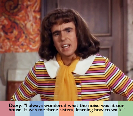 When Blavat leaves, Peter, Micky and Mike tease Davy. Peter says all he has to do is go out with him, and they’re a cinch to win. Mike says if Davy lets Blavat kiss him, he might own a television station. They’re kidding of course, but Davy’s rightfully pissed, “One more remark like that, and I’ll hit you with me purse.”