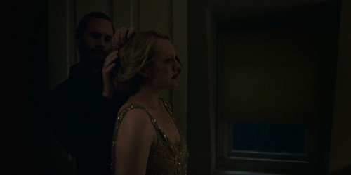 So Nick, right? We’re on to Nick in our origin story round-up. In the before-time, in the long-long ago, Nick was an unemployed loser just lookin’ for a job, Son. He gets into a tangle at the local employment agency, Worthy Path Career Counseling (creepy name with religious connotations). He basically gets “witnessed” to by a Son of Jacob, who gives him a few pointers on discipline and responsibility. Where are we? Five years ago? Ten? This is when I began to suspect that Gilead was a Socialist construct. The man he talks to speaks about Capitalism with disdain. He speaks of a plan to set the Country right and clean up the mess. He tells Nick he’s not alone, and I wonder why Nick has to be a bad apple so that the Sons of Jacob could clean him up and set him on the “right path.” June finds Fred waiting for her in her bedroom. He tells her he’s going to take her out for a night on the town. He even shaves her legs. The leg-shaving scene is one of the creepiest things I’ve ever seen in any television show or movie, or anything. He asks her if she remembers how to put on makeup. It’s been three fucking years. He wraps her up in a slinky dress. Elisabeth Moss is a handsome woman, but she’s hardly glamorous. I wouldn’t even call her sexy, but it takes all kinds to make a world, I guess, and I still don’t understand Fred’s attraction to her, or Nick’s. Maybe I’m just being cruel, but if you’re gonna put her kisser up on my big-screen TV, I’m gonna judge her looks. Sorry.