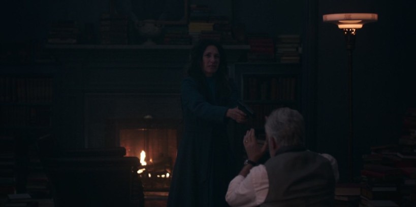 As I’ve said, it’s not always about fighting scenes and actor acrobatics. A character is established and must manifest personal ethics. How far is that character willing to go to achieve his or her ends? Where does that character draw the line? I know there is a very black and white interpretation to this idea; that a character must be “bad” or “good” and never deviate from that analysis, but this is where the “bending” comes into play. We can bend the rules. “Bending” does not exist in The Handmaid’s Tale. Almost immediately after June tells Eleanor (Julie Dretzin) she has a plan to rescue 52 children (and assorted handmaids and Marthas), Eleanor is pointing a gun at Lawrence (Bradley Whitford). June manages to talk her down, but it comes at a cost. June asks Lawrence for help in facilitating the escape.