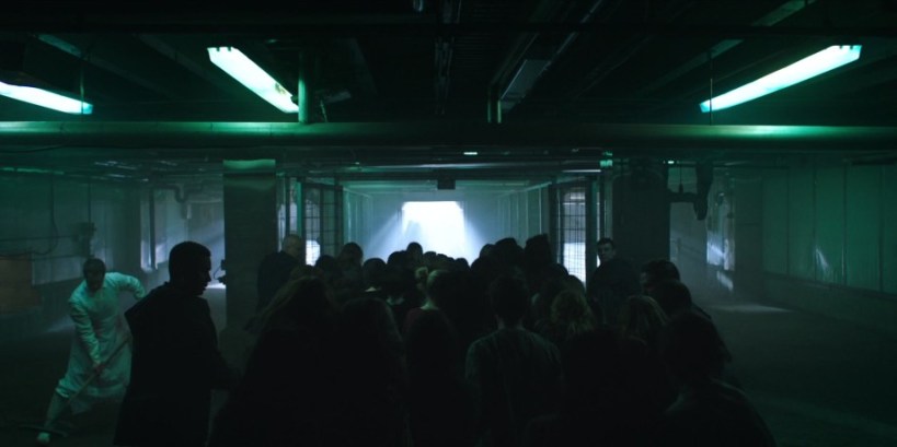 One of them, the soon-to-be one-eyed batshit crazy Janine (Madeline Brewer), even threatens to sue. One of the show’s tells is to throw in pointless flashback scenes when there isn’t enough story to fill out the running time (even though this episode runs over an hour). Always a bad sign. Meanwhile, in the present, the plan seems to be going along smoothly. June (Elisabeth Moss) fills us in. Notes (in the form of soap cakes) are passed in baskets. I guess they ran out of muffin batter. A plane leaves at midnight. Not a couple of minutes before, we had men with machine guns on street corners, but apparently everybody’s taking a smoke break. Lydia (Ann Dowd) takes June aside, convinced she’s up to no good. She tells her to watch herself. June says, “You got it!”