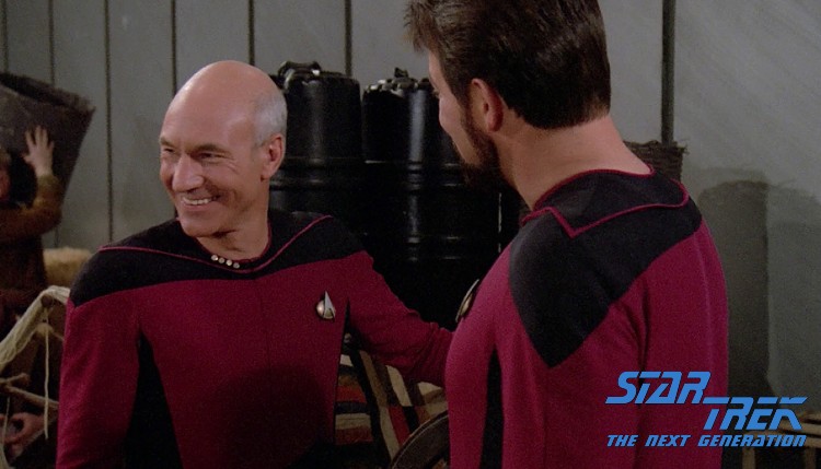 When he refuses, they steal said samples. Riker, Pulaski, and Geordi beam down with phasers and destroy their cloned bodies. Picard comes up with the idea to reunite the two colonies, Bringloidi and Mariposa. It’s a brilliant solution for a very clever story with all the hallmarks of great science fiction, but Irish drunks so nevermind. In a tiny subplot at the beginning of the episode, Worf (Michael Dorn) collapses on the bridge and suffers the Klingon equivalent of measles. Pulaski covers for him, telling Picard he was fasting and passed out from sheer exhaustion. In gratitude, Worf performs a Klingon tea ceremony with her. It’s a nice little character beat that gives us information about Pulaski and Worf.