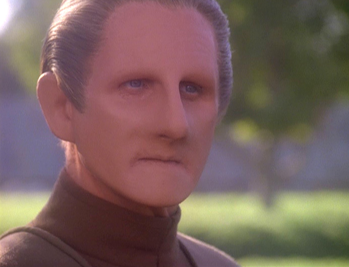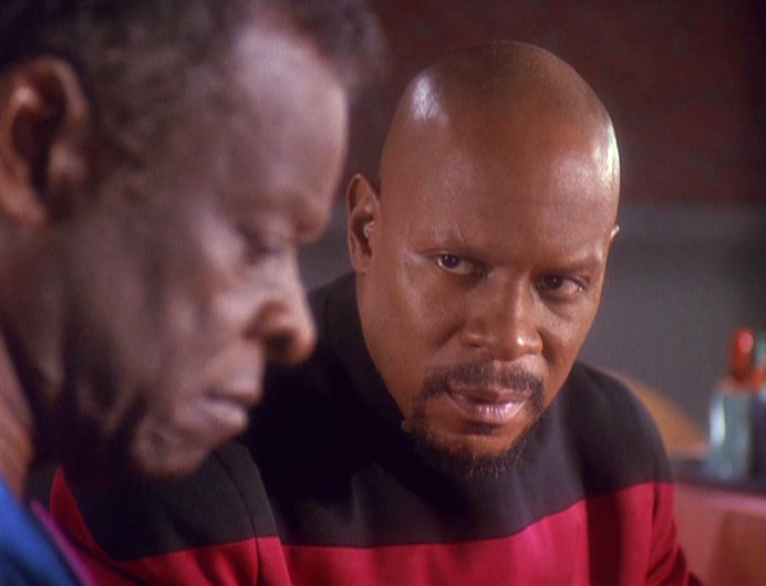 In fact, he’s a little too at ease in the midst of this panic. Sisko’s Dad, because of his failing health, has to stick to a regimen, and because the changelings are among us and Dad doesn’t want to eat or leak blood, Ben begins to suspect his Dad may be a shape-shifter.