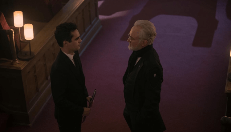 The two unrelated subplots of Lydia and Lawrence collide. I’m trying to remember if they ever had any scene together in the past. Maybe briefly during June’s second stint. Aunt Lydia tells him she has information on his activities that would reflect poorly in his new relationship with the Commanders. She believes she can be more helpful than an old witch on a treadmill. Lawrence counters her offer by suggesting she reveal information about other Commanders that could ensure his plan for a cease fire goes through. They reach a modus vivendi. So many deals are being made in this fourth season. It’s like the countless scenes in Game of Thrones where people take walks through the Betrayal Gardens and hatch plans to take over the Seven Kingdoms.