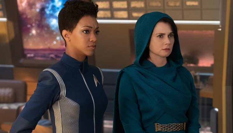 Even though I find her story more interesting than anything else, it’s been relegated to the “C” plot. We get a triple feature this time. Since everything must be about Michael Burnham (Sonequa Martin-Green) at all times, she gets the “A” plot and part of the “B” plot. The “A” plot involves a reunion with her foster mother, Amanda (Mia Kirshner) as they attempt to make sense of Spock’s personal logs and also catch up a little. Amanda behaves in strict contrast to how both Jane Wyatt and Winona Ryder behaved in earlier shows and movies.