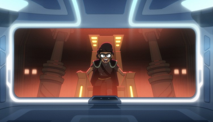 Meanwhile, Boimler, in preparation for an interview with the captain, conjures up a holodeck scenario using real characters from the ship, including the captain. When Mariner sees what he’s up to, she rewrites his program and turns it into an action movie. Mariner plays Vindicta, a space raider hell bent on destroying the Cerritos. Tendi and Rutherford play her crew.