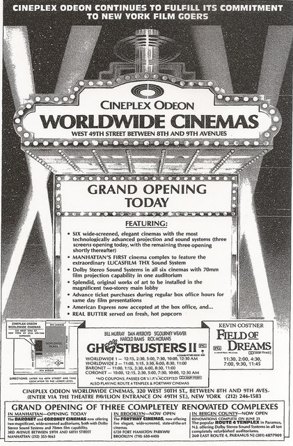 I don’t know why we didn’t get around to seeing Jurassic Park in its original run. Maybe I was working, but I did eventually get down to the second-run Cineplex Worldwide Plaza in Hell’s Kitchen. This was a fantastic, clean theater with six screens showing second-run movies for two bucks a ticket! It was a paradise for movie lovers. I think it was August or September when we finally got down to the Cineplex to see Jurassic Park (in DTS, no less) and it was incredible to watch.