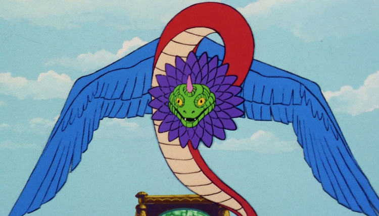 One of the more consistent of those themes is the idea of a super-intelligence roaming the cosmos either searching for God, or claiming to be God, and Kukalkan is that creature. The embodiment of Kukalkan appears as a winged serpent with multi-colored feathers. It reminds me of one of the many strange characters that would pop up on The Venture Brothers, a show that spoofed cartoons like these in every episode. I kept thinking the second Kukalkan popped up, Brock Samson would simply jump on it and crush its neck before it had a chance to spout off its platitudes about helping mankind.